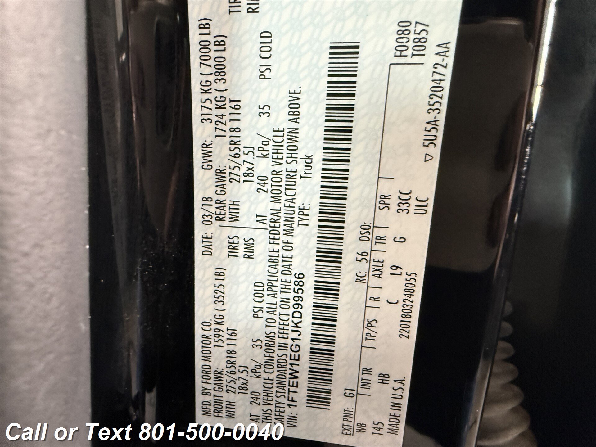 TEXT or CALL 801-500-0040