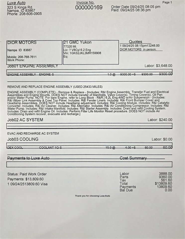 2021 GMC Yukon XL Denali Premium 4x4,  77.5k actual miles,  DVD screens,  Rebuilt title,  Mechanical damage, Replaced motor with used motor with 28k miles,   see receipt in pics, 7 passenger,  Heated cooled front seats,  Rear heated captain seats,  Heads Up display,  Panoramic sunroof,  360 camera,  Lane assist,  Adaptive cruise,  Bose sound system, 2 keys,  22 inch wheels,  Power side steps,  Max trailer tow package,