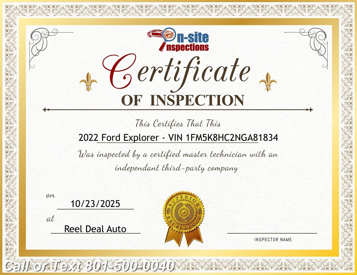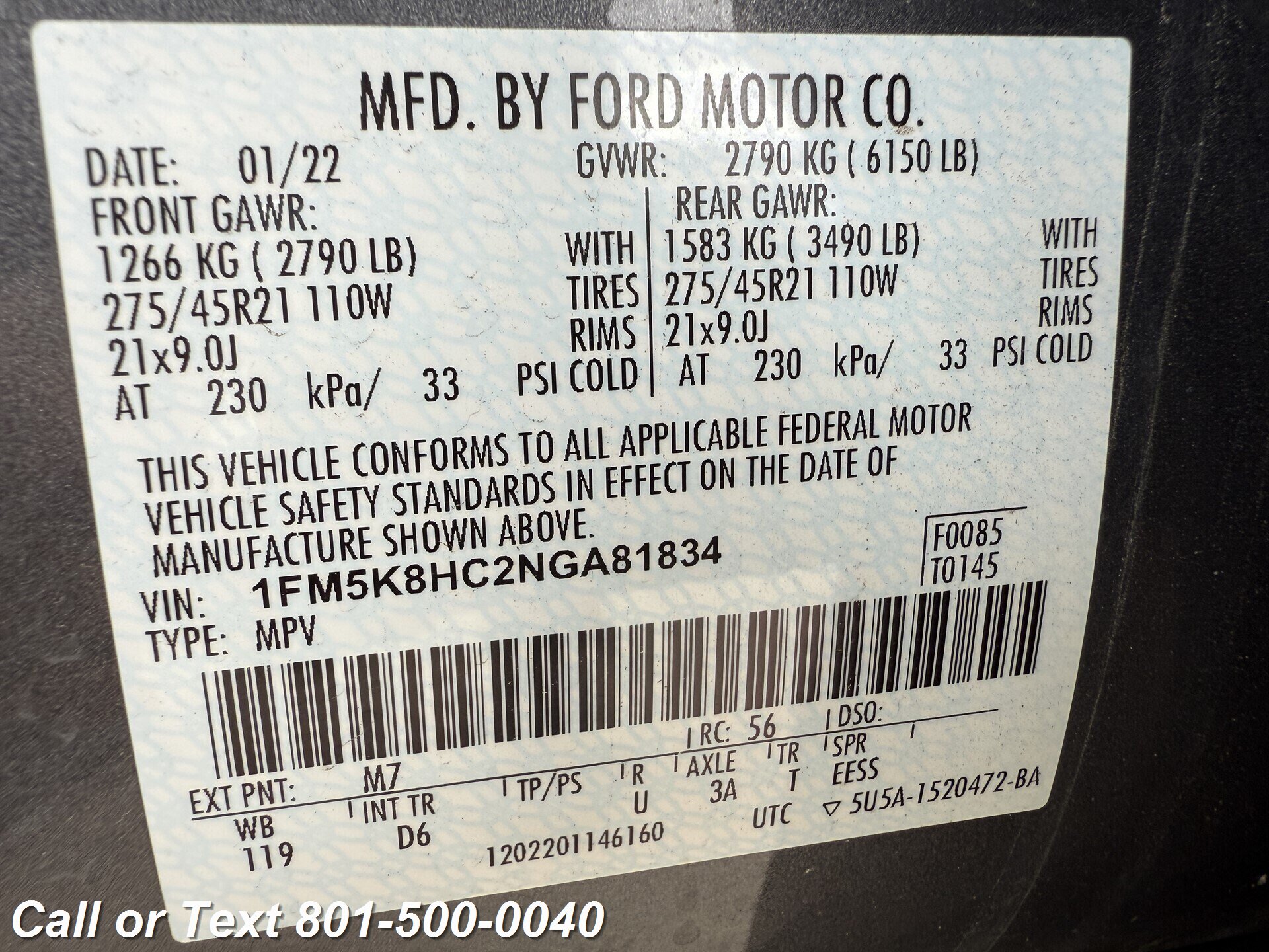 TEXT or CALL 801-500-0040