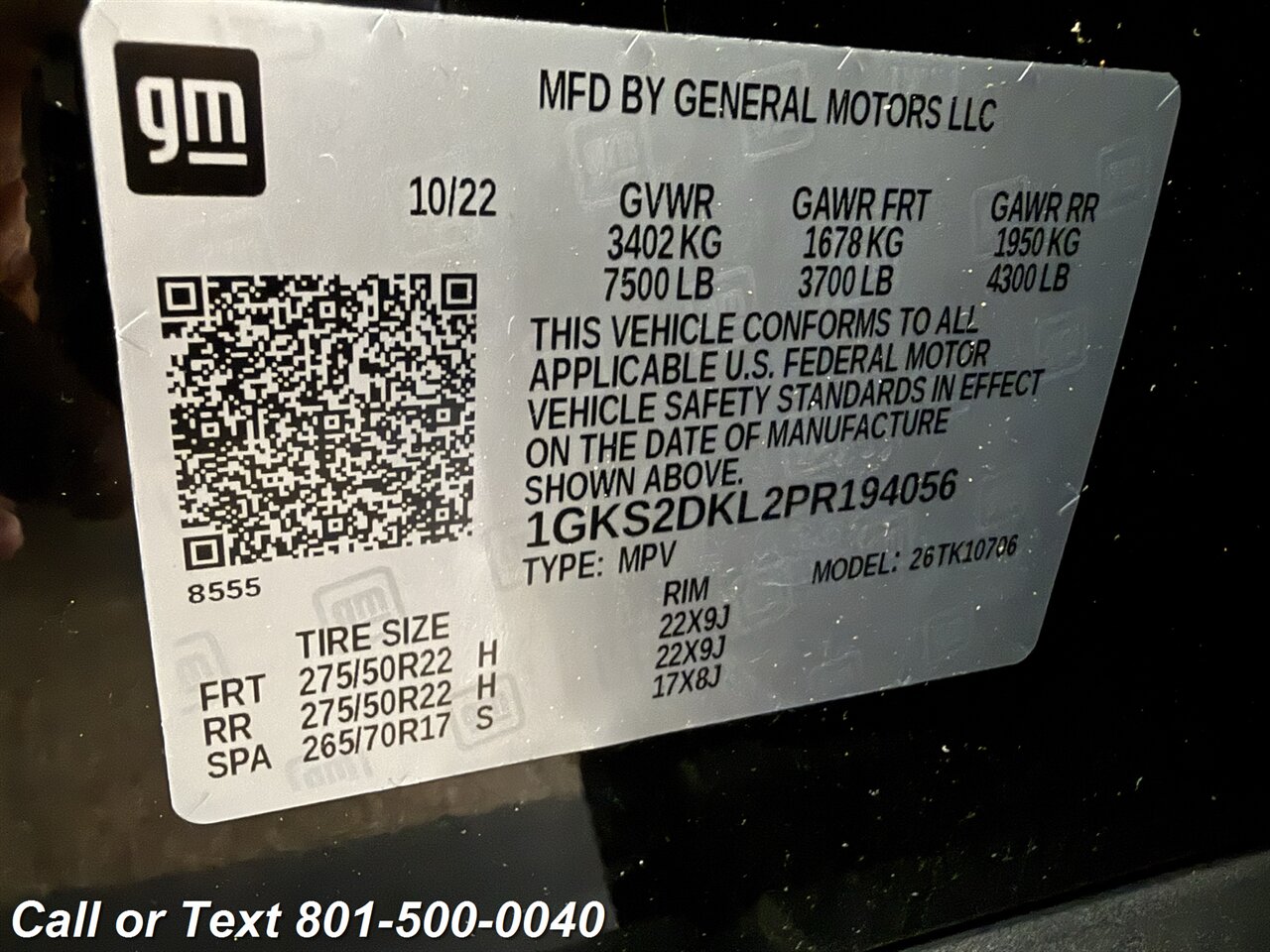 TEXT or CALL 801-500-0040