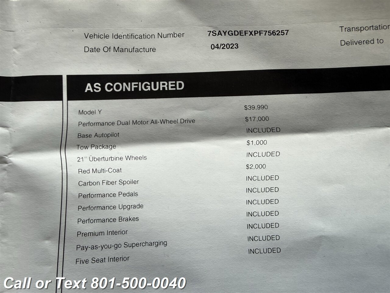 TEXT or CALL 801-500-0040
