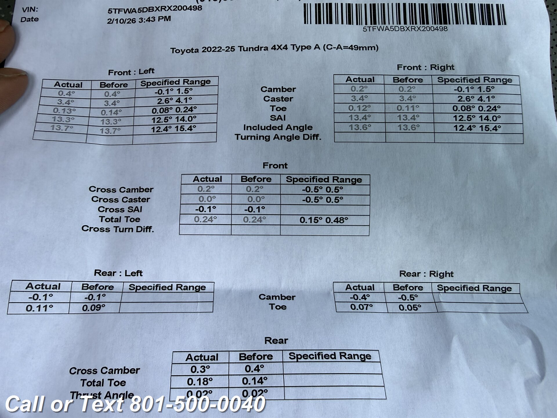 TEXT or CALL 801-500-0040
